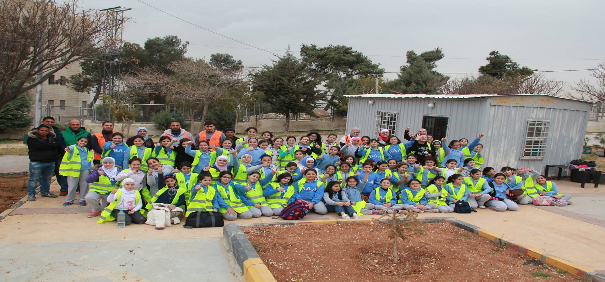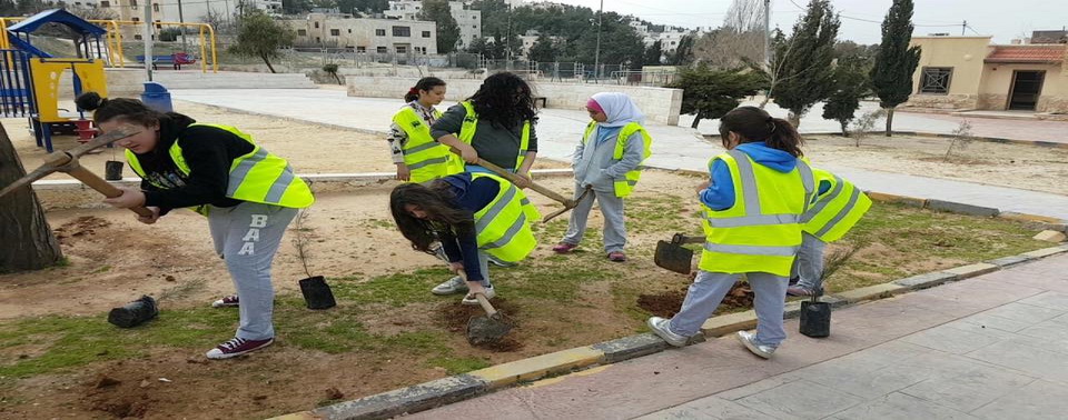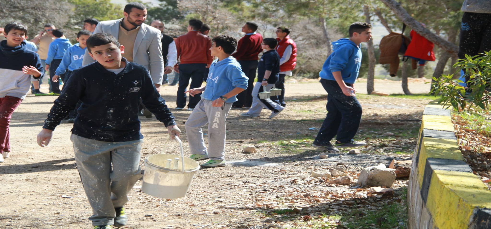 3. In an attempt to protect trees from insects, the boys in grade seven painted tree trunks in Prince Hashem Public Park in Bireen.