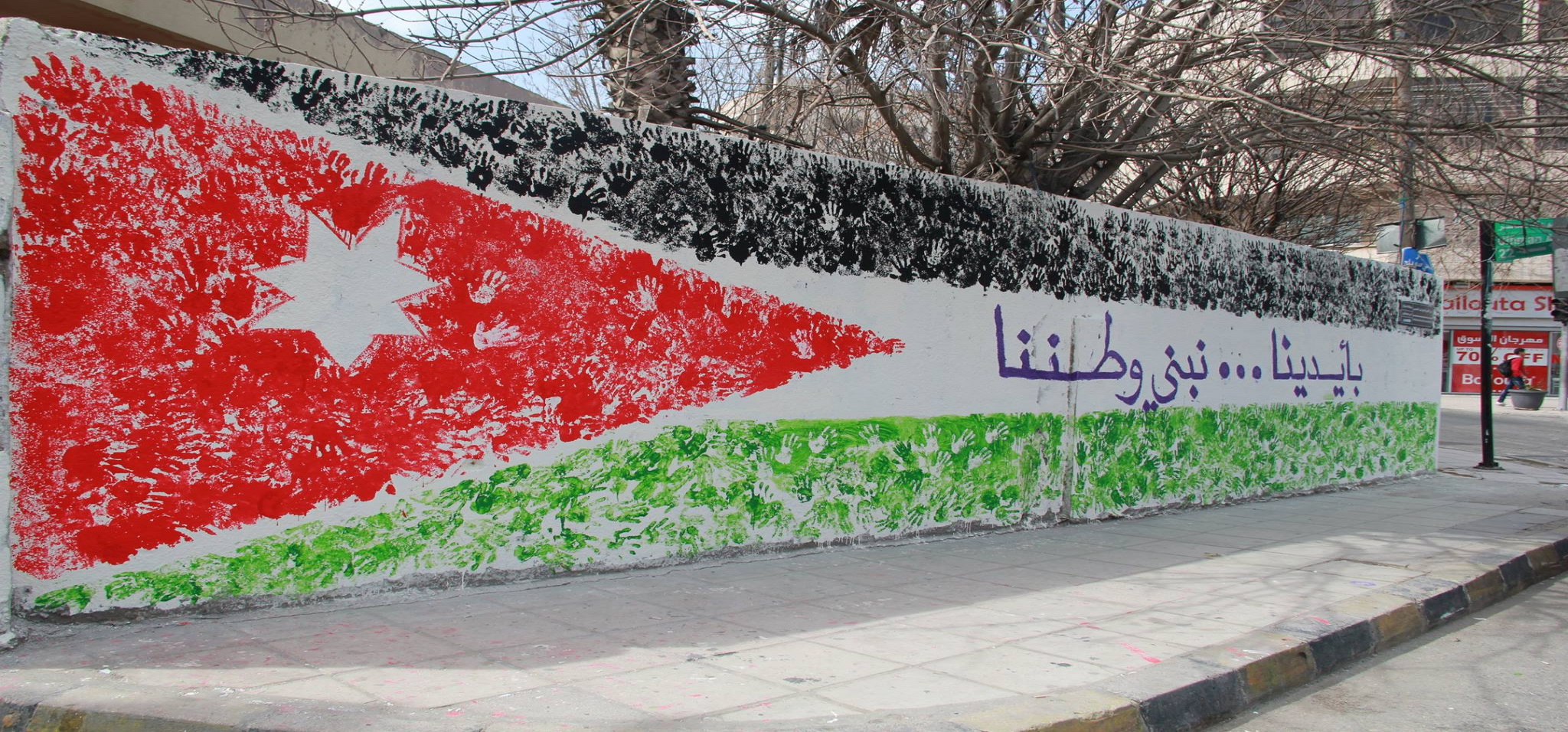 grade seven drew patriotic paintings and some scientific statements on the wall of a public school in Sweileh.