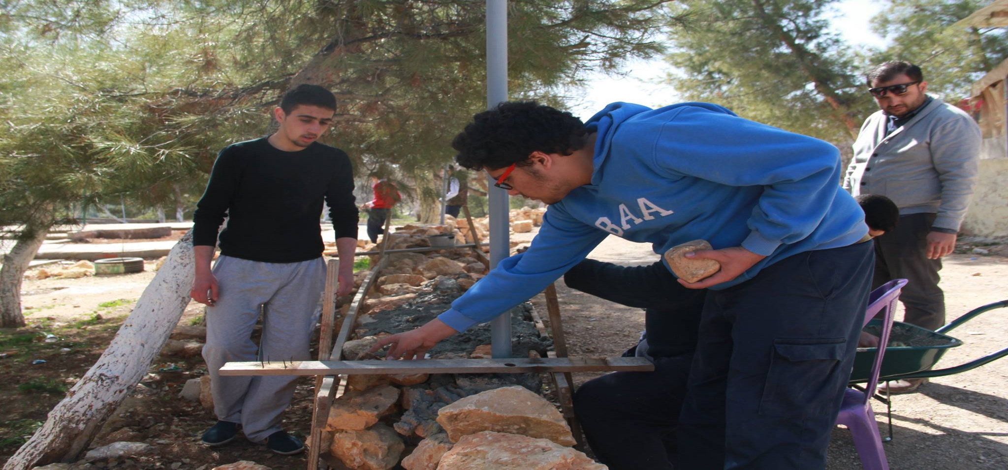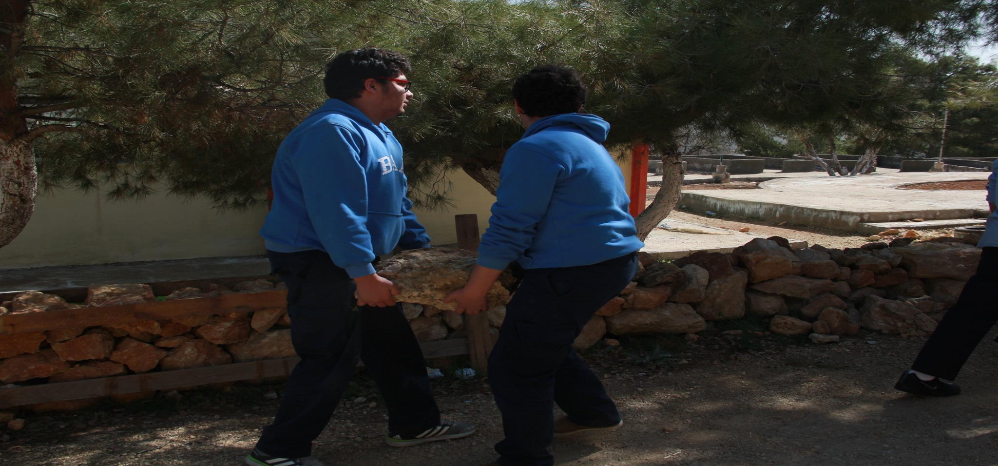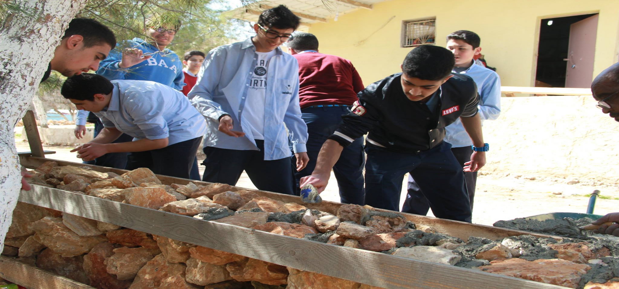 2. The boys in grade ten and eleven resolutely built stone chains in Prince Hashem Public Park in Bireen to prevent soil erosion.