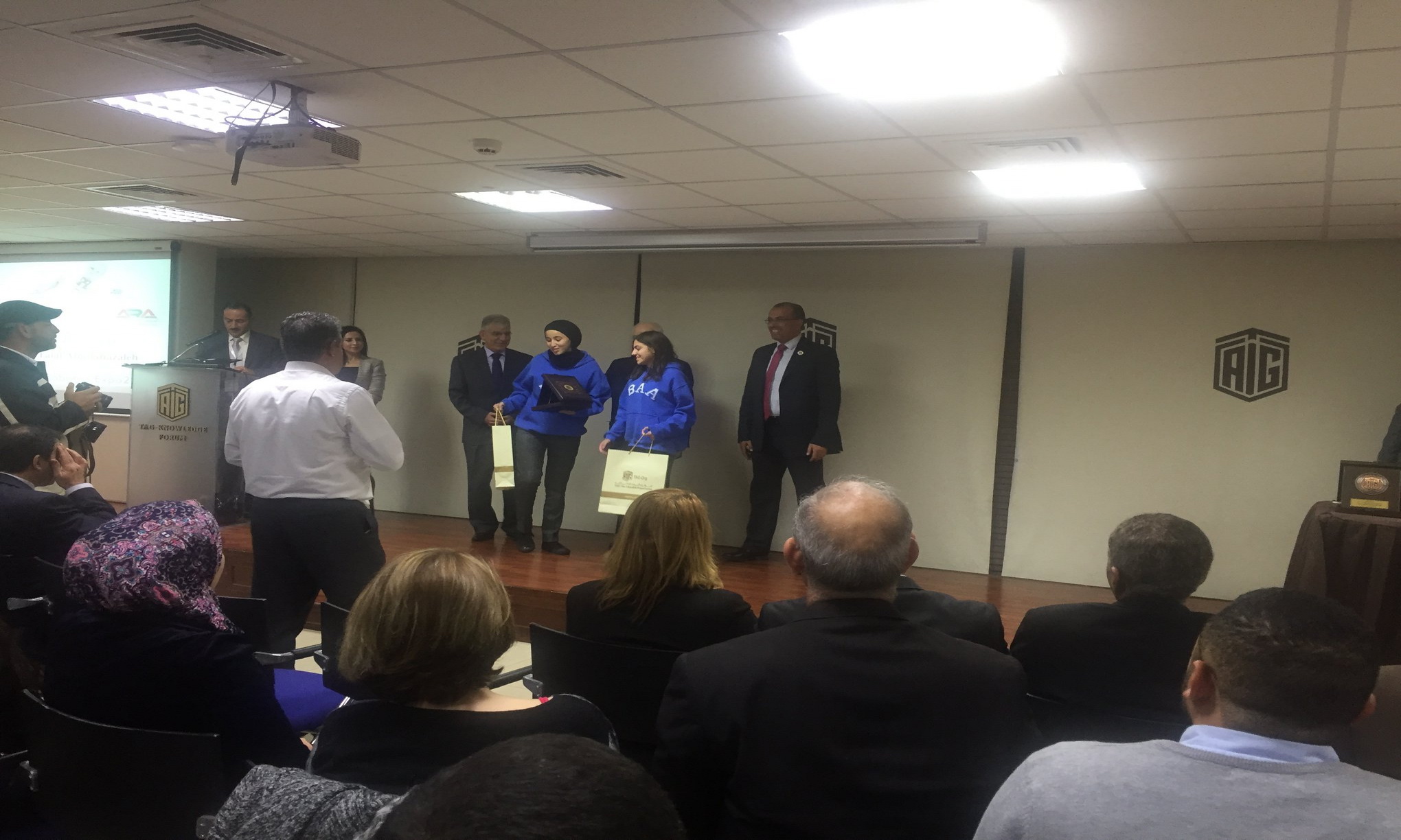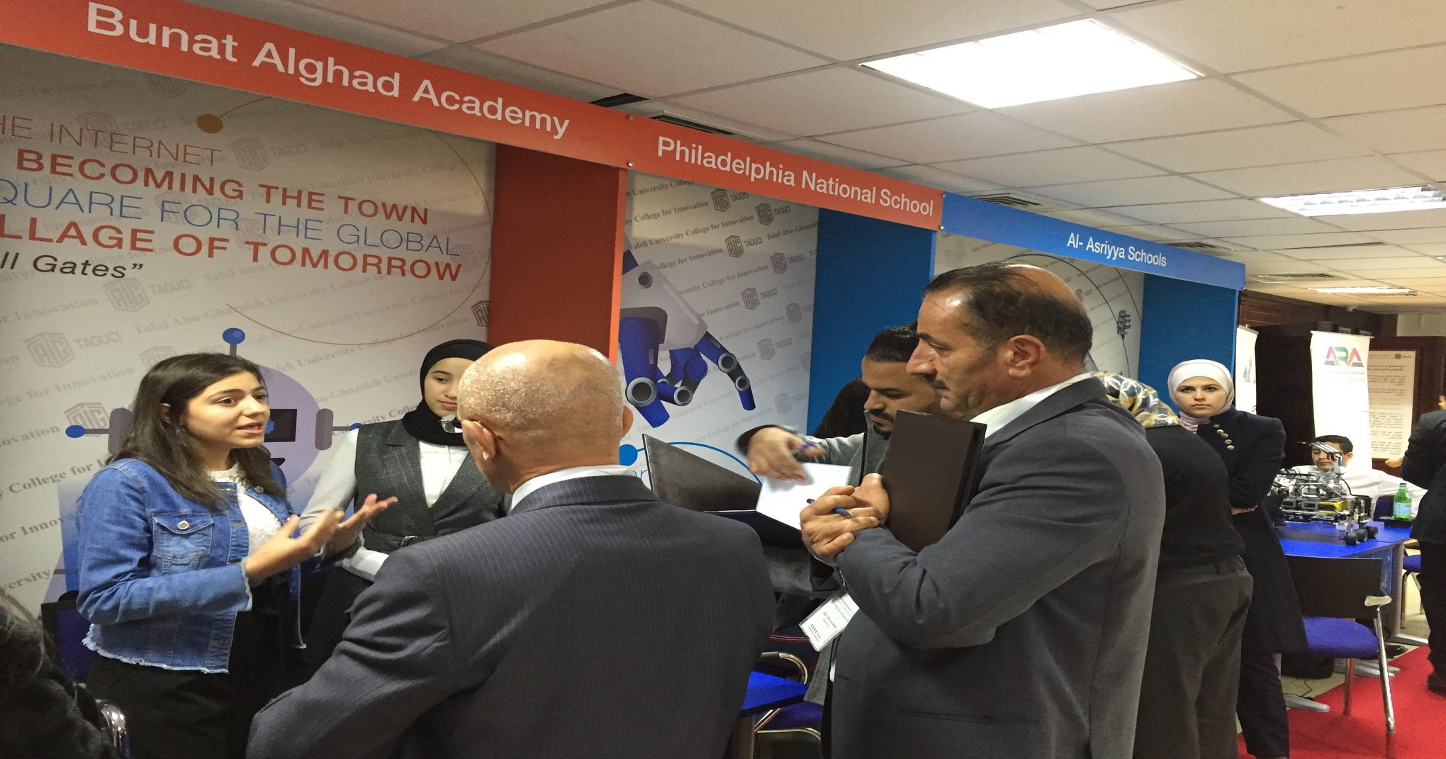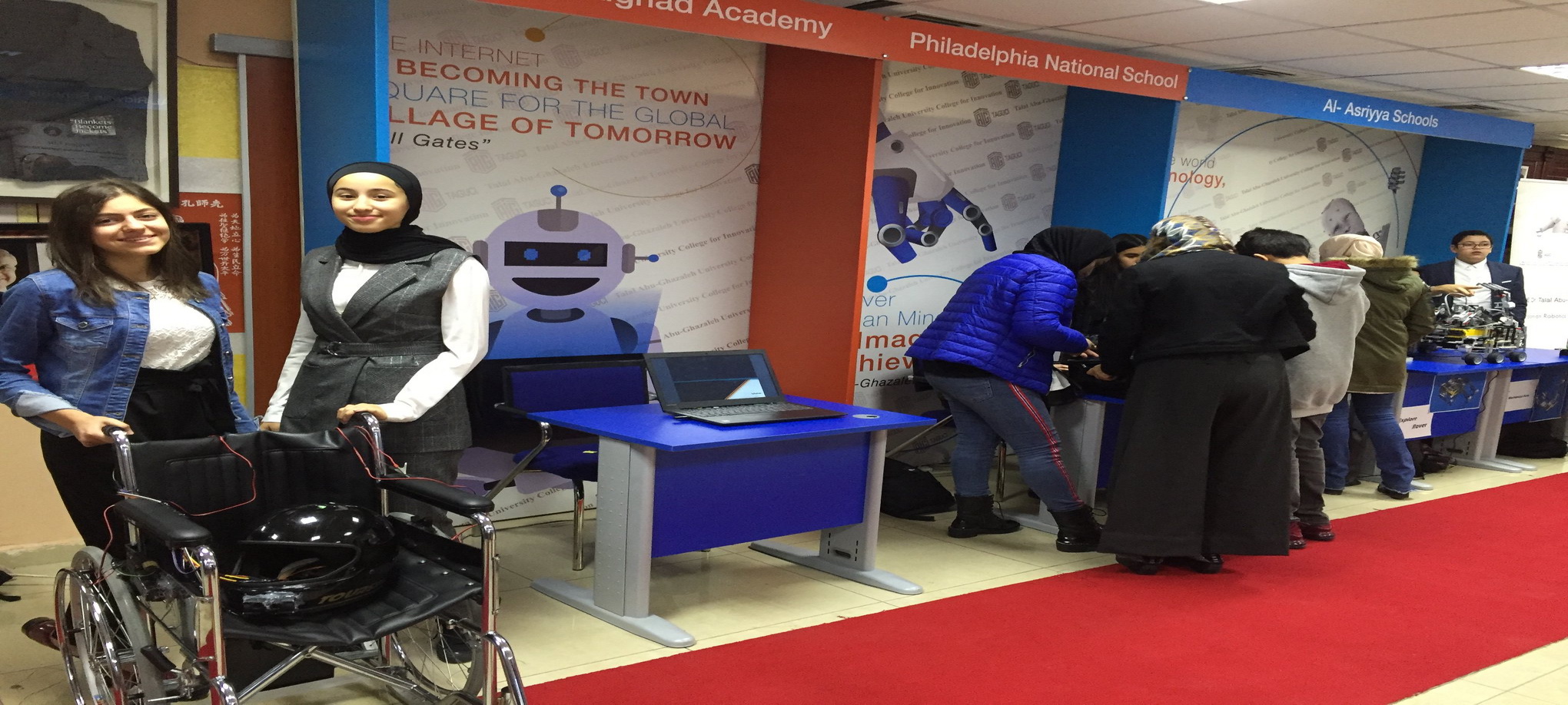 Our students, Hala Barakat and Layan Aljunaidi, participated in the Jordanian robot exhibition held by Talal Abu-Ghazaleh Group under the supervision of The Arab Robot Society. Our students competed against 76 schools and universities in Jordan, and they got the third place.