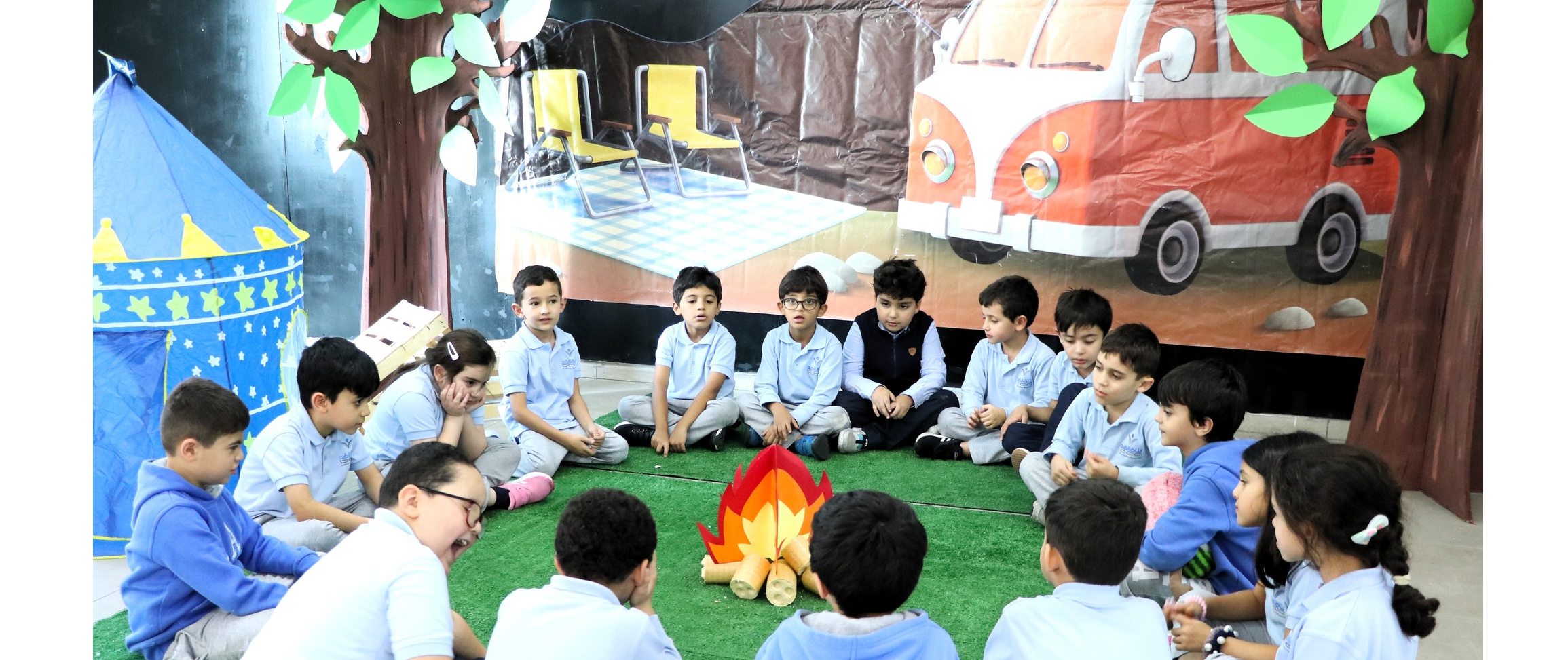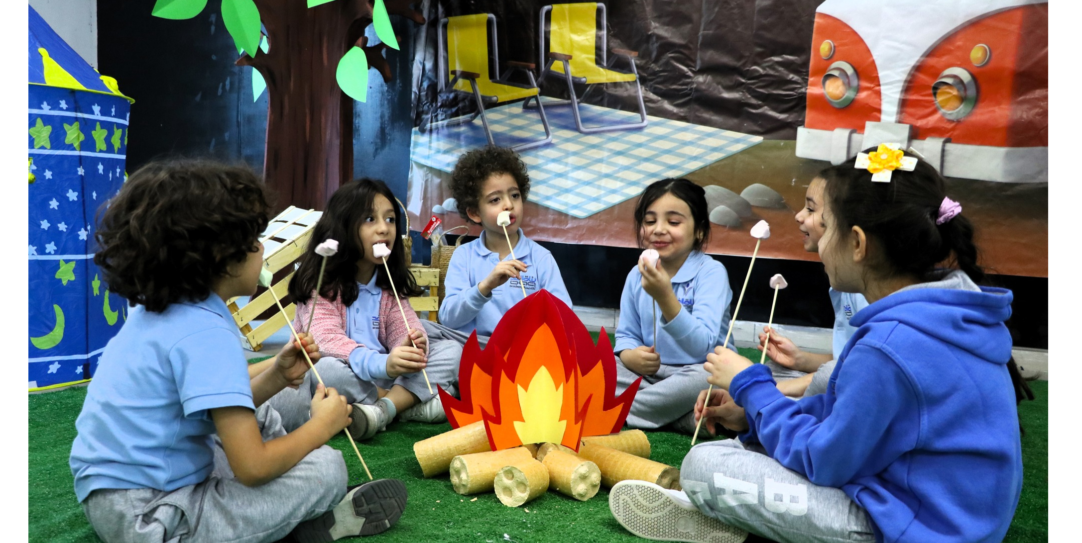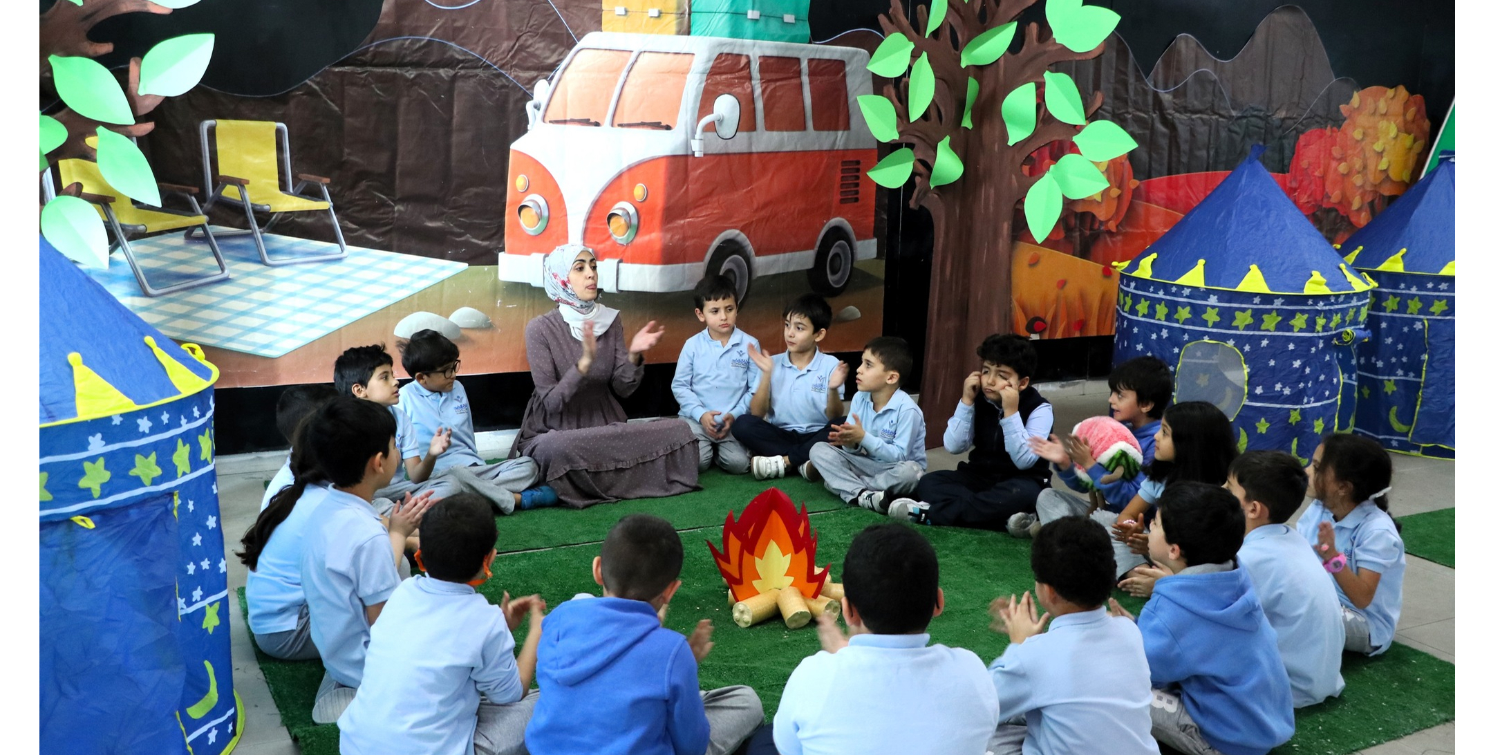 Grade one students are having fun learning with camping theme activities