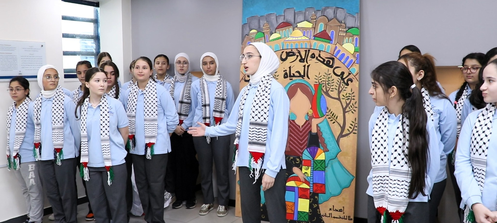 The girls department studentsexpressed their solidarity with children and families in Gaza through a group of artistic activities, such as playing, reciting poetry, and painting.