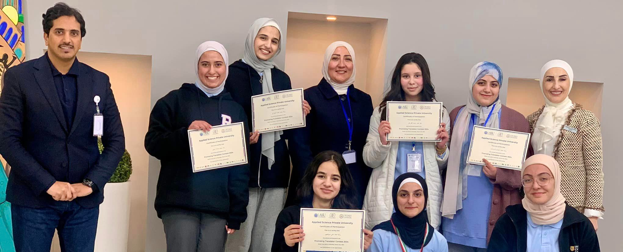 Our brilliant students participated in the annual "Promising Translator Contest" which was organized by the Applied Science Private University, with the participation of 500 students from government & private schools.