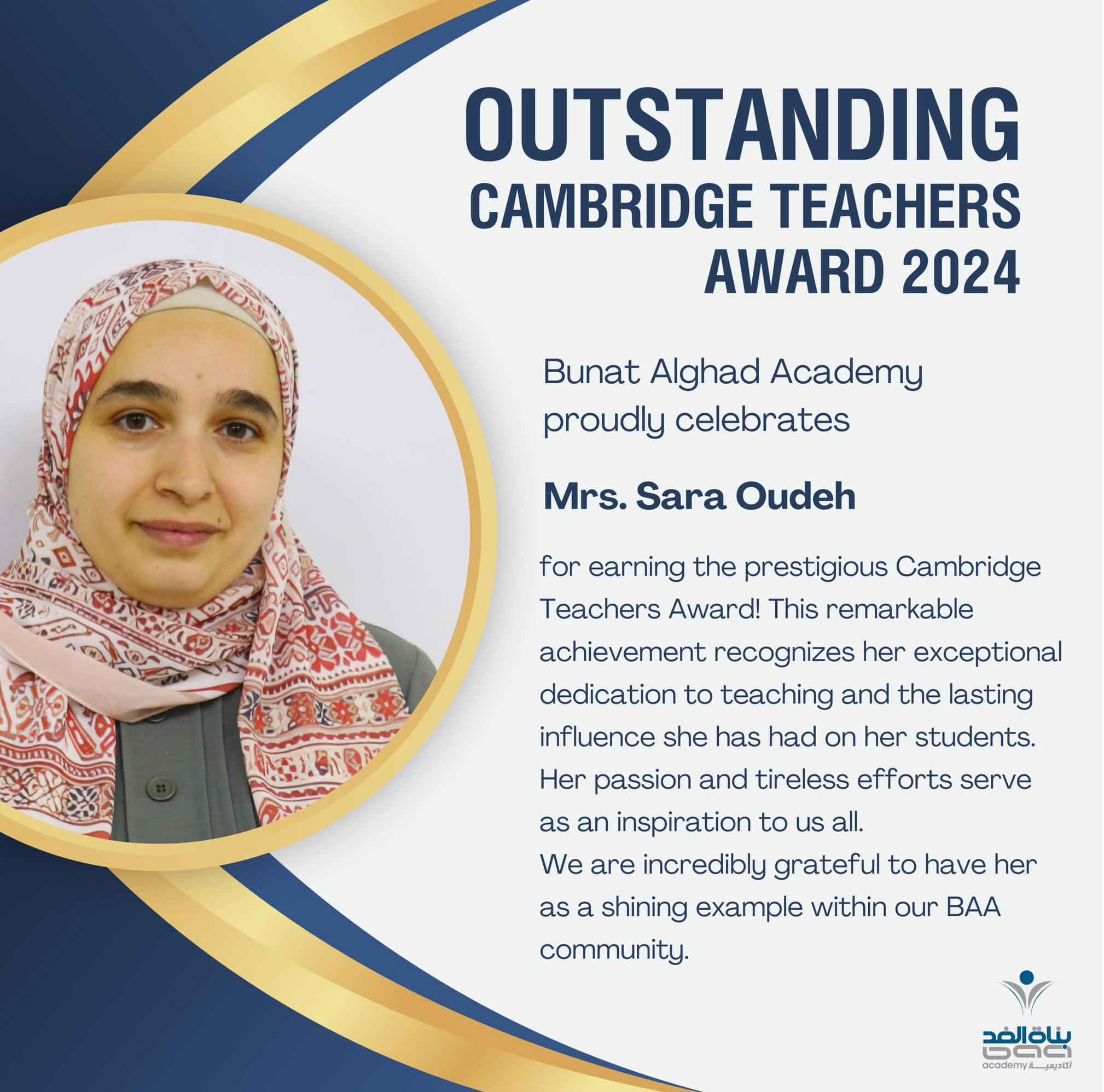 We are truly proud of you Mrs. Sara Oudeh for your dedication and passion in teaching. You truly deserve this award.