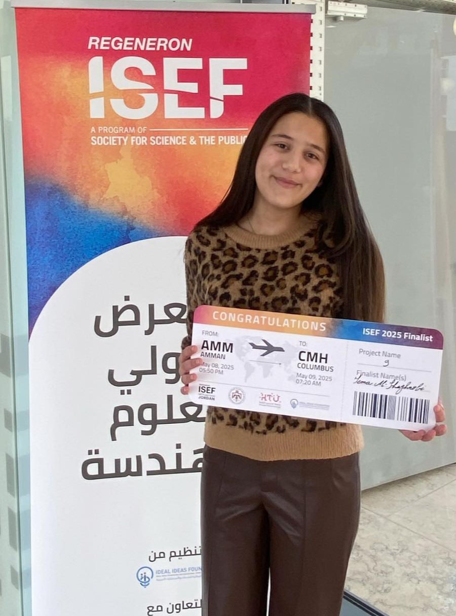Her project ( Developing A Screening Instrument For Arabic Speaking Children With Reading Dyslexia ) has been selected as one of the top 15 projects that will represent Jordan and our school at the International Science and Engineering Fair (ISEF) in Columbus, Ohio, USA.