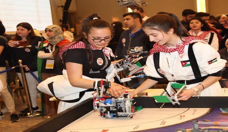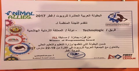 Our students, Hala Barakat and Layan Aljunaidi, participated in the Jordanian robot exhibition held by Talal Abu-Ghazaleh Group under the supervision of The Arab Robot Society. Our students competed against 76 schools and universities in Jordan, and they got the third place.