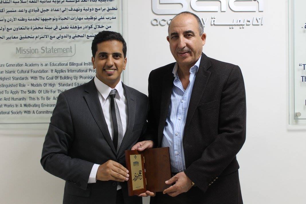 تتقدم أسرة أكاديمية بناة الغد بأجمل التهاني والتبريكات لمديرها العام الدكتور خالد العدوان بمناسبة تسلّمه وسام اليوبيل الفضي من جلالة الملك عبدالله الثاني المعظم وبحضور ولي العهد الأمير الحسين بن عبدالله الثاني.